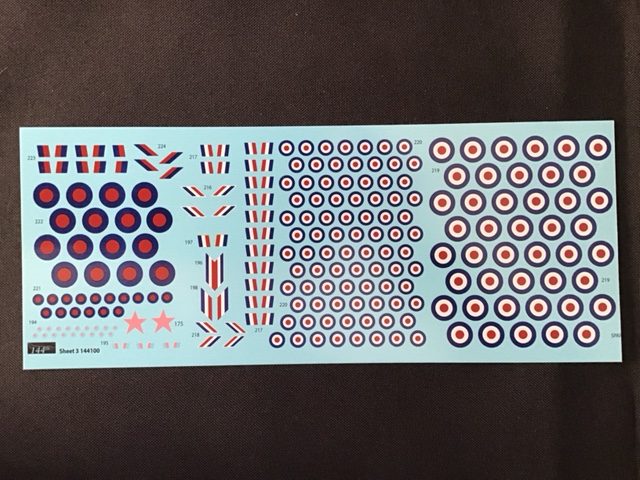 This Water Slide decal sheet (9” X 3”approx) has 238 individual roundels/fin flash.