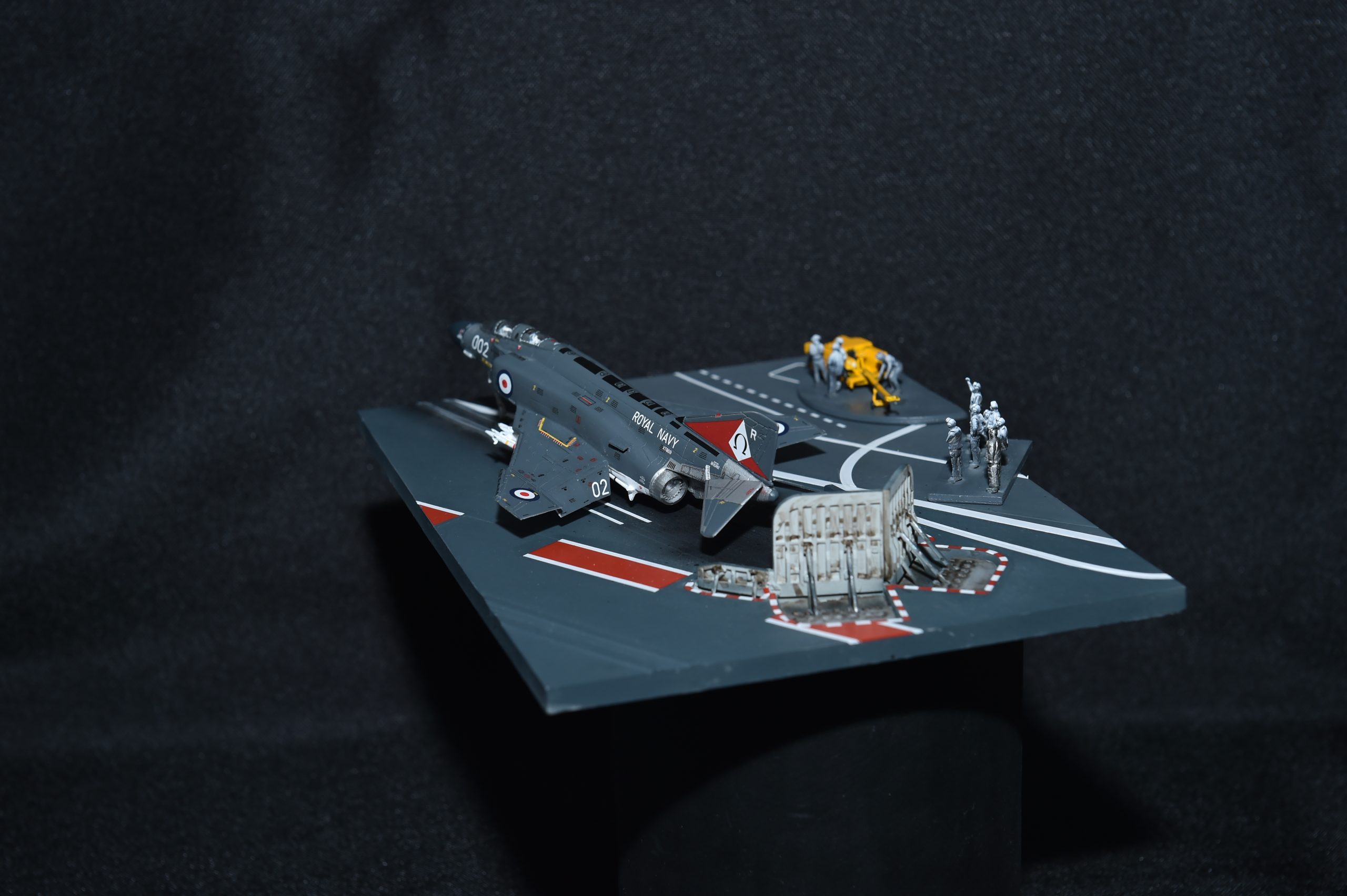 The kit consists of 36 parts of resin and metal components. Includes 10 assorted Hero’s of Italy crew figures and the Vickers deck tractor. NOTE: the Phantom & Buccaneer models are not included and can be purchased separately. The Phantom FG.1 kit number 144030 and the Buccaneer S.Mk.2 kit number 144032 are compatible with the Ark Deck, as both have separate flaps to model in the take off mode.