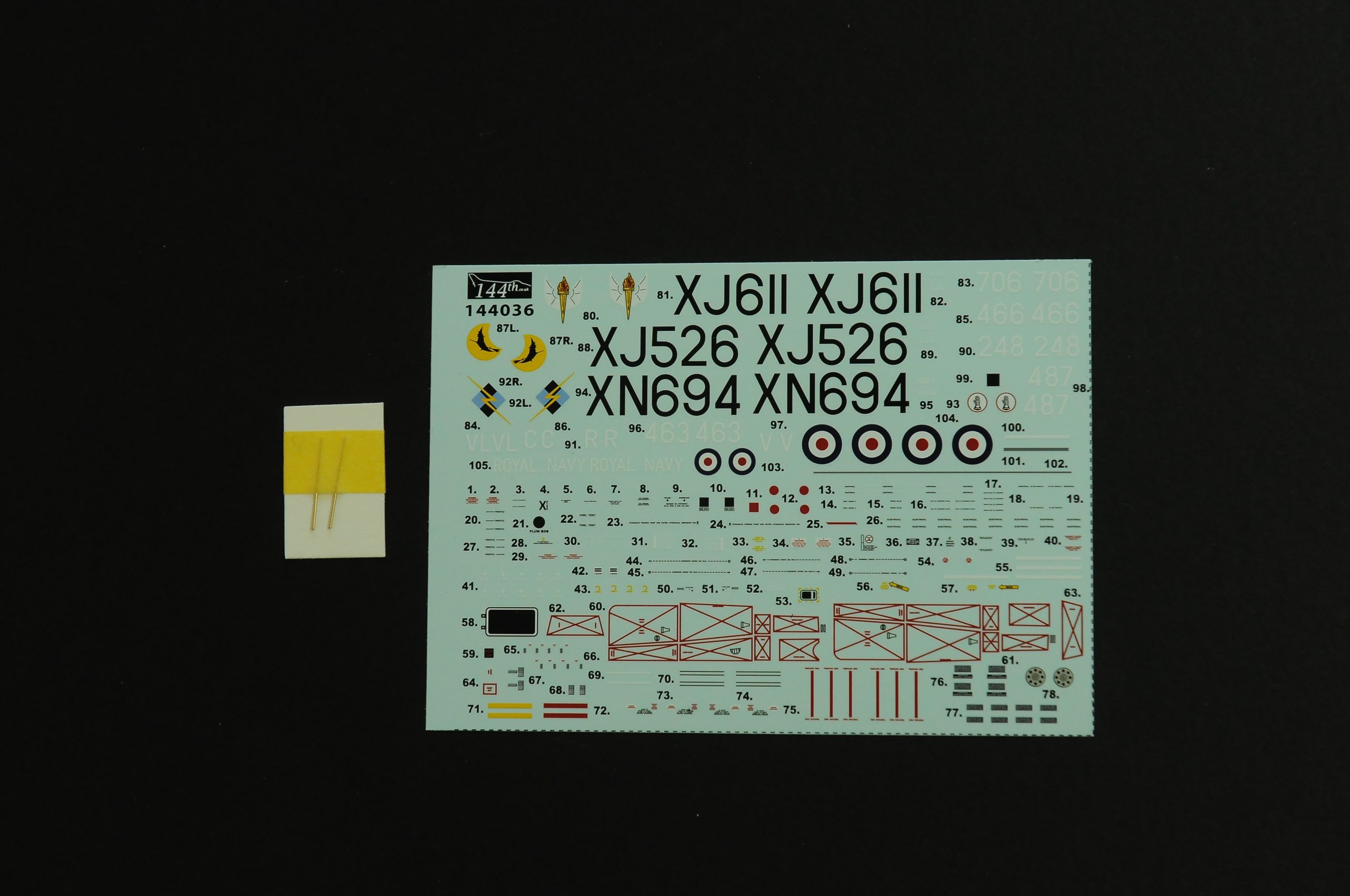 The decal sheet printed by Cartograf of Italy gives the modeller a choice of different Royal Navy squadron options: