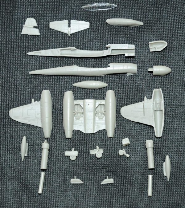 Also enclosed in a cockpit set for use with the clear canopy, to enable you to install seats, instrument panel and cockpit tub.